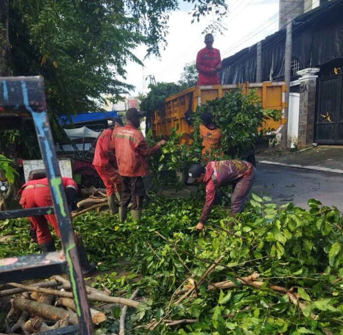 Tim di lapangan segera melakukan pemotongan batang pohon, pembersihan ranting, serta membuka akses jalan yang sempat tertutup.